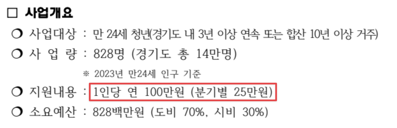 경기 청년 기본소득은 분기별로 25만원, 1년간 100만원을 지원합니다. 만 24세 청년이고 경기도 내 3년 이상 거주한 청년은 모두 받을 수 있는 것이므로 대상자인지 여부를 확인하여 신청해야 합니다. 현재 1분기 신청은 끝이났고, 2분기 신청을 놓치지 않도록 해야 하겠습니다.