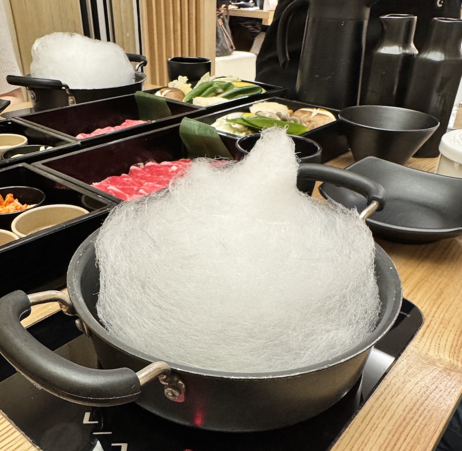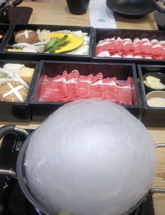 비쥬얼 부터 다른 샤브샤브를 먹어보려면 고터 맛집 일상정원을 추천합니다. 평범한 샤브샤브지만 솜사탐을 활용한 이색적인 음식이 인기 끌고 있습니다. 솜사탕을 이용해 독특한 맛을 내는 샤브샤브로, 색다른 경험을 할 수 있는 곳입니다.