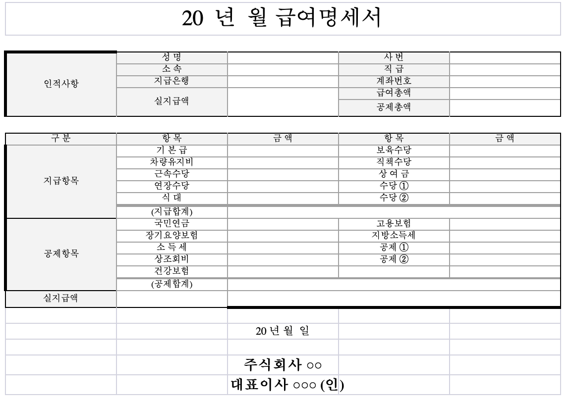 급여명세서 서식 출근부 서식 엑셀 파일