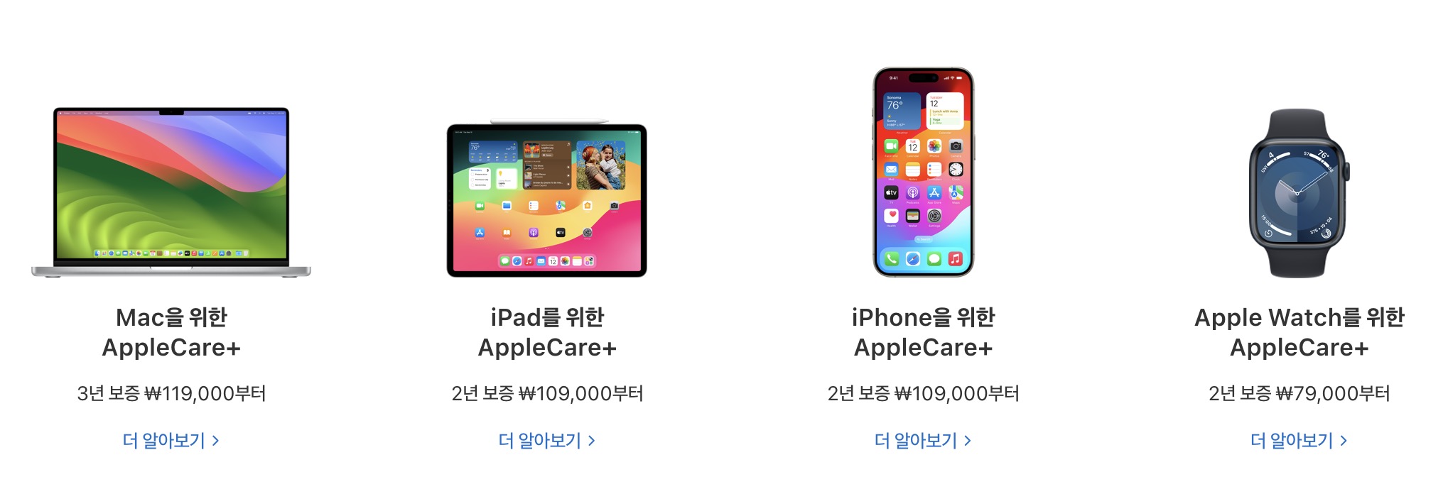 애플케어 플러스를 가입하면 워런티 기간이 연장이 되고 실수로 인한 파손까지 저렴한 비용으로 처리할 수 있습니다.