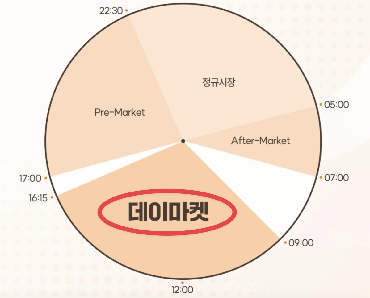그런데 데이마켓(데이장)은 도대체 무엇일까요? 어떻게 미국주식을 우리나라 낮에 거래할 수 있는 것인지 궁금하시죠? 야간에 잠 안 자고 거래해야 했던 미국 주식을 낮에 거래할 수 있다니. 쉽게 얘기해서 미국주식 100만 개 중에 우리나라에서 10개를 산다면 이 10개를 사는 사람들만을 위한 장이 생기는 것입니다. 그렇다면 가격 변동폭이 매우 커질 수 있겠지요? 그래서 원래 미국주식은 상한가와 하한가가 없지만 데이마켓에서는 상한가와 하한가가 존재합니다. 약 15%의 상 하한의 제한이 있어요.