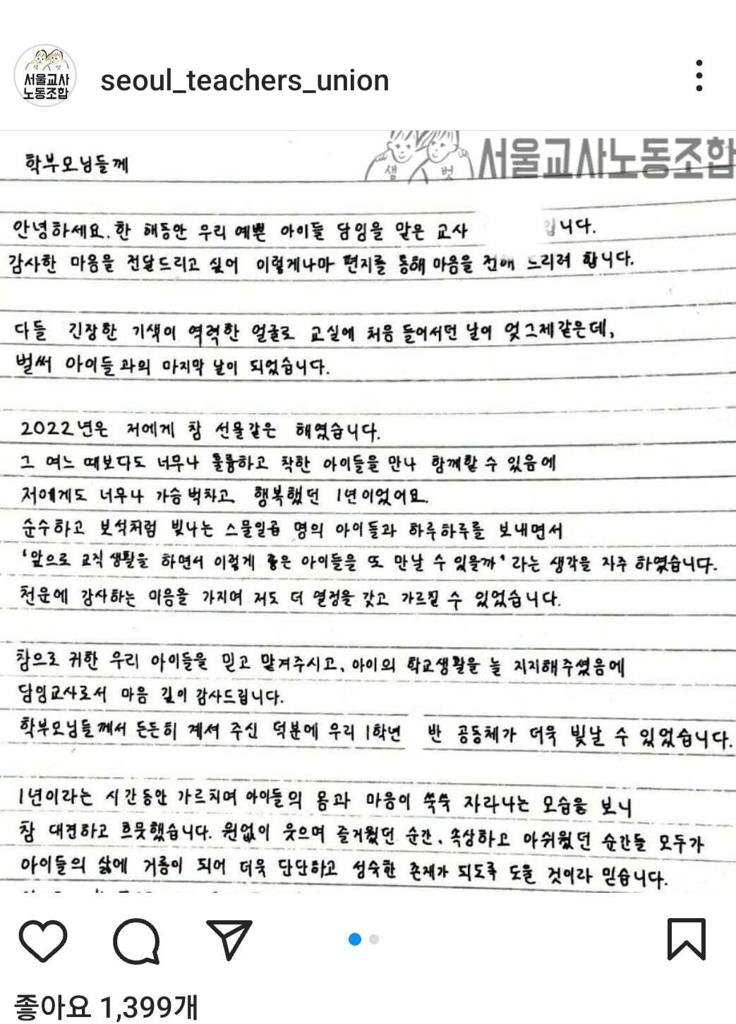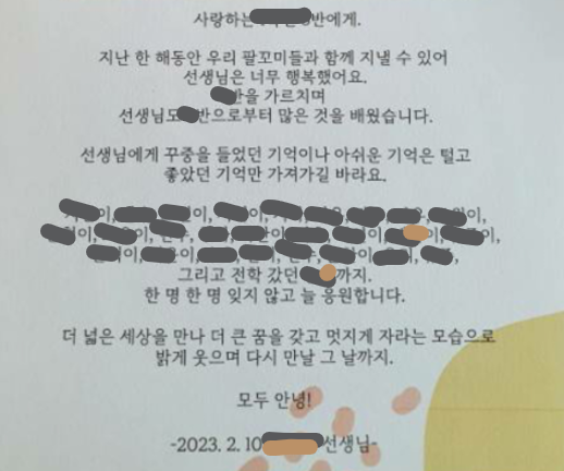 2022년에 쓴 편지를 보니 선생님이 참 마음이 따뜻한 분인 것 같아 더 마음이 아픕니다.