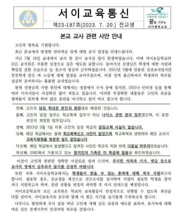 서이초 교사 편지 | 가해자 피해자 학부모 민원