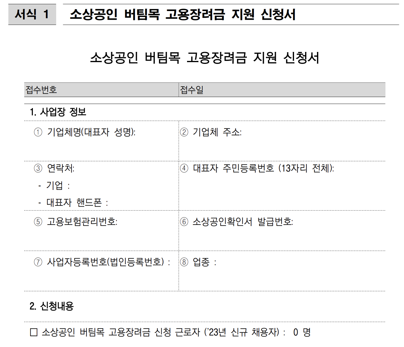 소상공인 버팀목 고용장려금 지원신청서 양식 다운로드