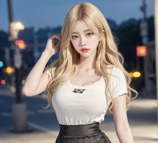 <lora:koreanDollLikeness_v15:0.33>, <lora:fte_futuanerV1:0.1>, <lora:aespaKarina_aespaKarina2023128DB:0.5>, <lora:naeun_V10:0.2>, <lora:iu_V35:0.1>, <lora:chilloutmixss_xss10:0.2>, ulzzang-6500, (aegyo sal:1.4), best quality, ultra high res, (photorealistic:1.4), (beautiful Korean woman:1.0), (Kpop idol:1.0), (blond wavy short hair:1.4), (bangs:1.4), masterpiece, illustration, an extremely delicate and beautiful, extremely detailed, CG,unity, 8k wallpaper, Amazing, finely detail, masterpiece, official art, extremely detailed CG unity 8k wallpaper, absurdres, incredibly absurdres, ultra-detailed, highres, extremely detailed, beautiful detailed girl, extremely detailed eyes and face, beautiful detailed eyes, light on face, (looking at viewer:1.4), wide hips, thick thighs, (orgasm:1.6), (1 girl), detailed shiny skin, (looks like Amber Heard:1.2), natural breast, small breast, downtown street, night view, (full body shot:1.6), (t-shirt, pleated skirt, pantyhose, running shoes:1.6), topless, model pose, realistic body