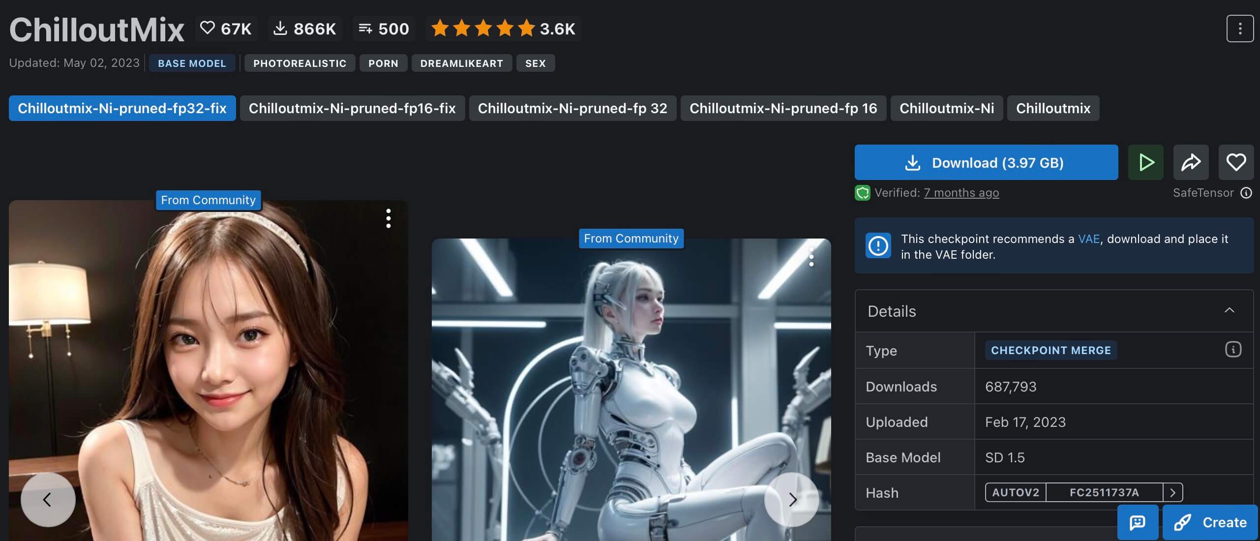 ChilloutMix의 경우 위의 링크에서 다운로드 할 수 있습니다.