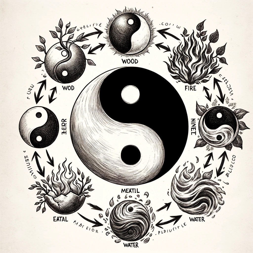 음양오행(陰陽五行)은 중국의 전통 철학에서 중요한 역할을 하는 개념입니다. 이 이론은 자연과 인간 사회, 건강을 이해하는 데 사용되며, 모든 것이 음(陰)과 양(陽), 그리고 다섯 가지 기본 요소인 '오행'(五行) 즉 목(木), 화(火), 토(土), 금(金), 수(水)의 상호작용을 통해 이루어져 있다고 봅니다.