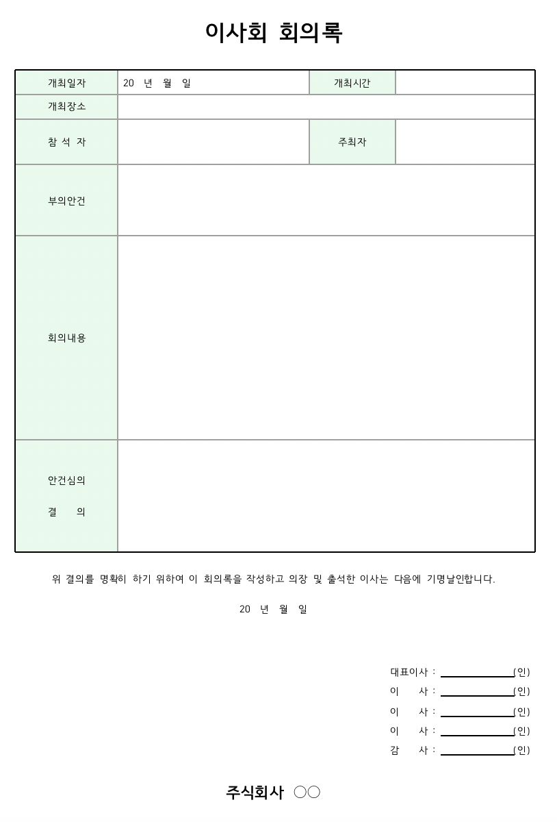 이사회 회의록 양식과 위임장 양식을 공유합니다.