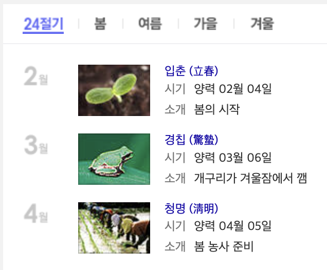 24절기에 관한 간단한 설명은 아래를 참고하세요.