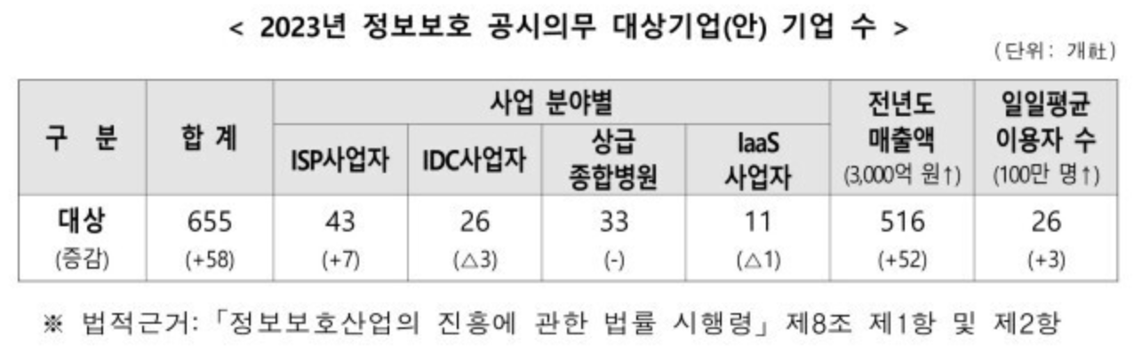 정보보호 공시의무 기업 655곳…"국내외 대기업, IDC, 플랫폼 포함". https://www.msn.com/ko-kr/news/other/정보보호-공시의무-기업-655곳-국내외-대기업-idc-플랫폼-포함/ar-AA1acIOo