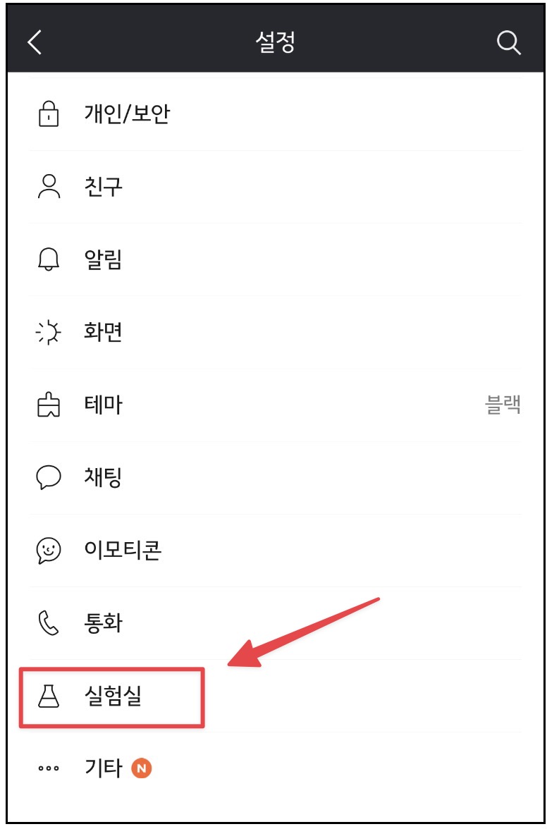 - 실험실 기능 활성화: 설정 메뉴에서 '더보기'를 선택하고, '실험실 이용하기'를 활성화합니다.