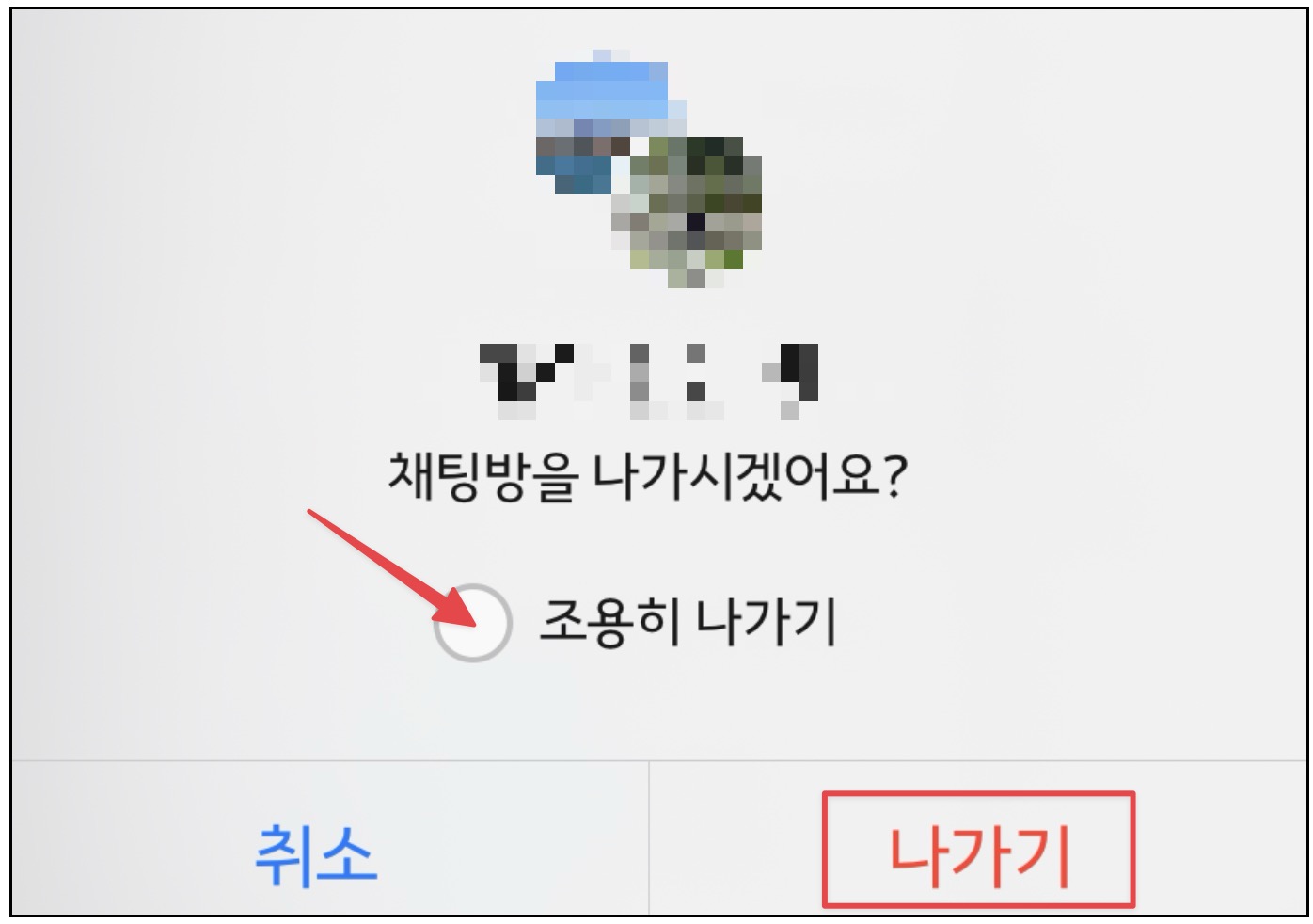 - 조용히 나가기 선택: 나가기 옵션에서 '조용히 나가기'를 선택하고, 나가기를 진행합니다.