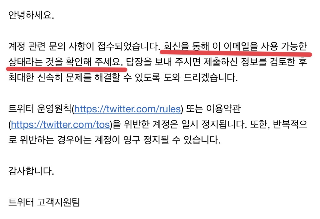 도대체 2회 이상 반복적인 트위터 운영원칙 위반이라고 하는데 1회 했을 때 경고도 없이 이렇게 운영원칙 위반으로 영구 정지 시키는 것이 이해가 되지 않는다.