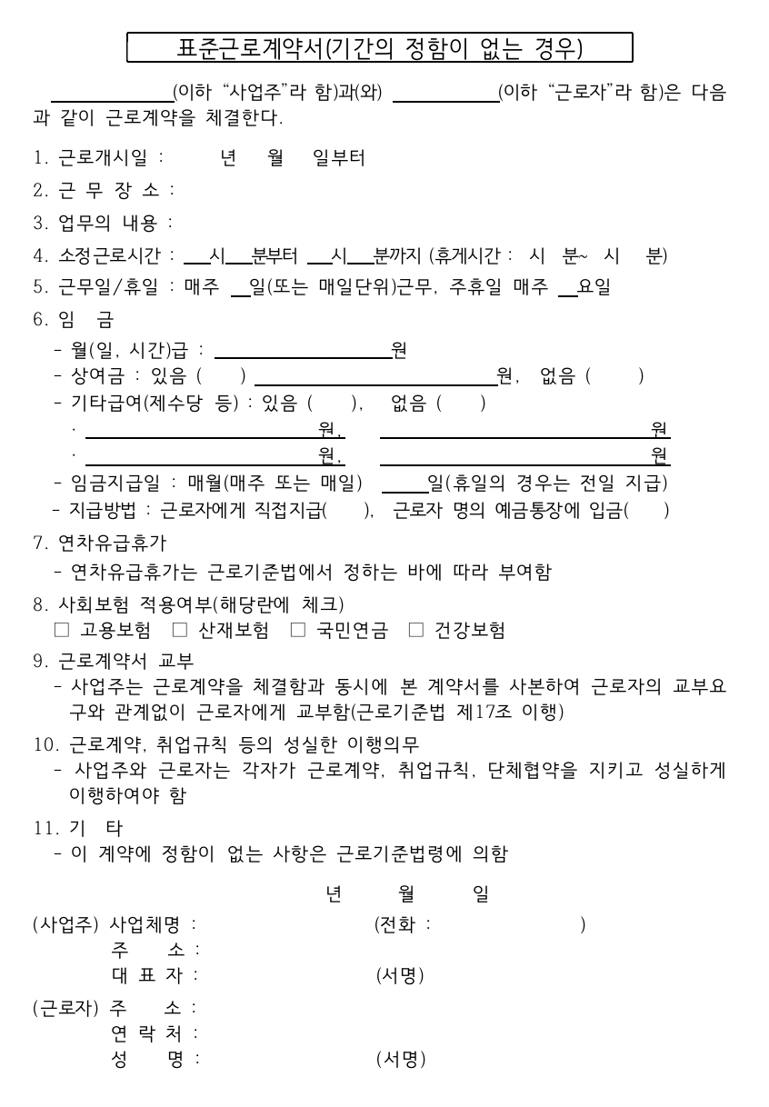정규직이 사용하는 표준근로계약서는 아