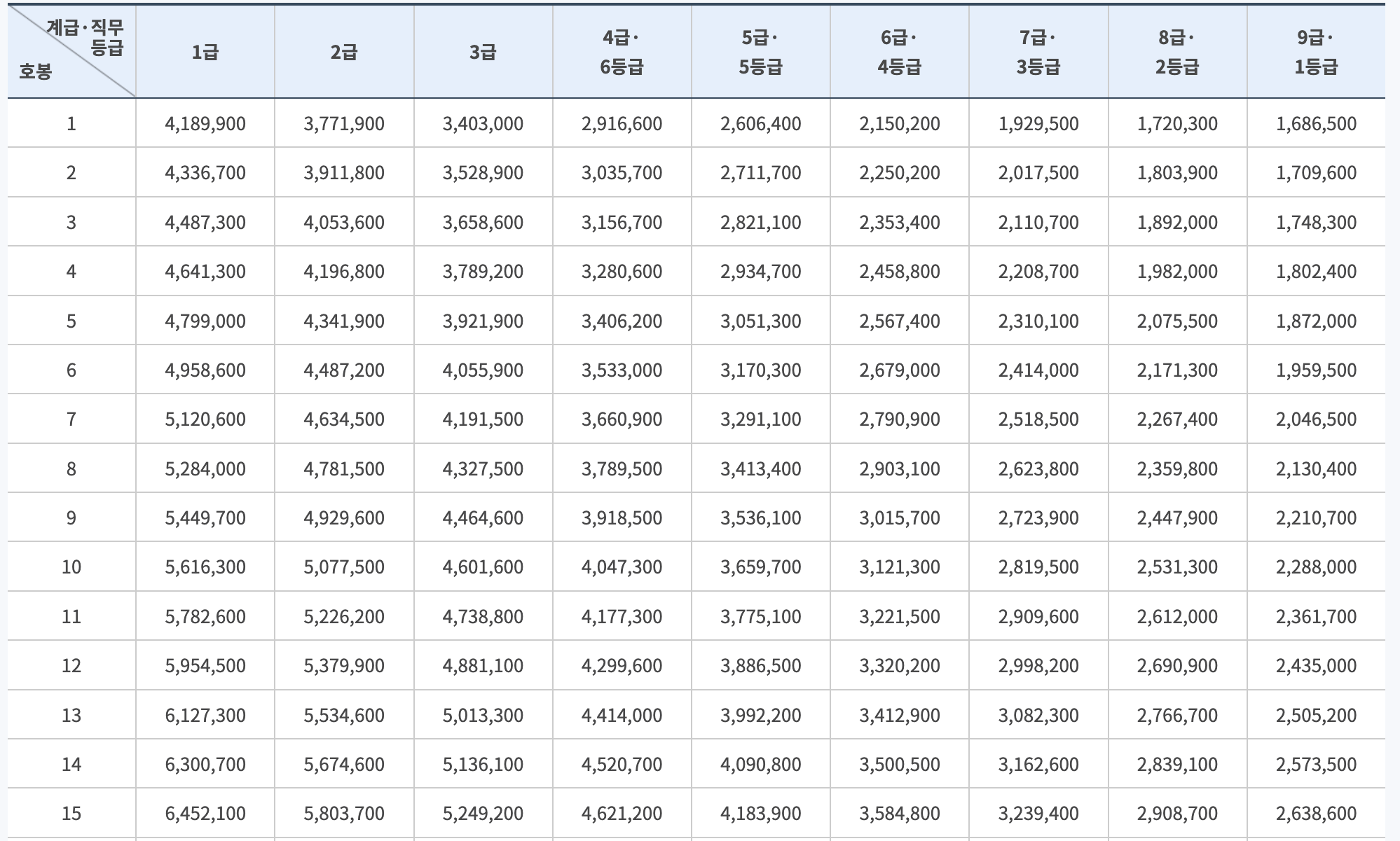 2022년 일반직 공무원의 봉급표는 아래와 같습니다. 출처는 인사혁신처입니다.