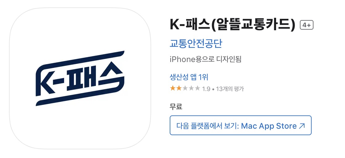 공식 k패스 앱과 비슷한 사칭 앱에 주의 해야 합니다. 공식앱은 아래와 같습니다.